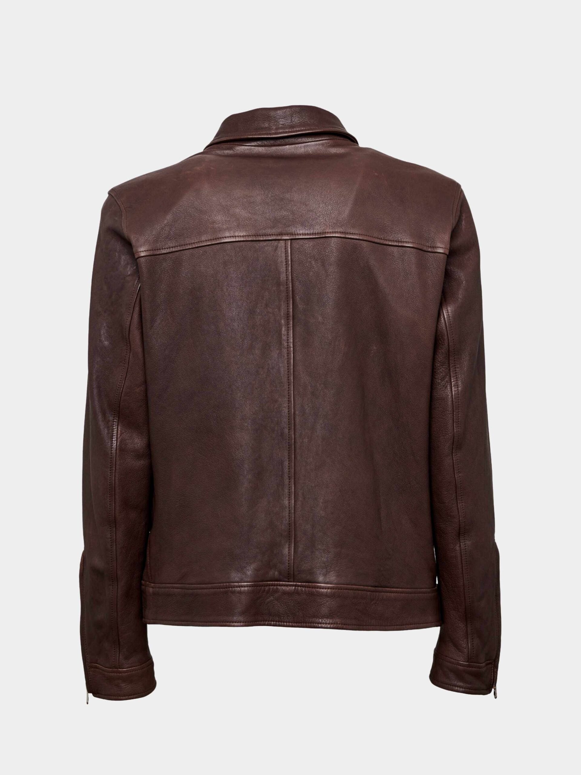 Aviator jacket in Ascot goat leather with removable shearling collar, ribbed details and warm lining for everyday comfort.