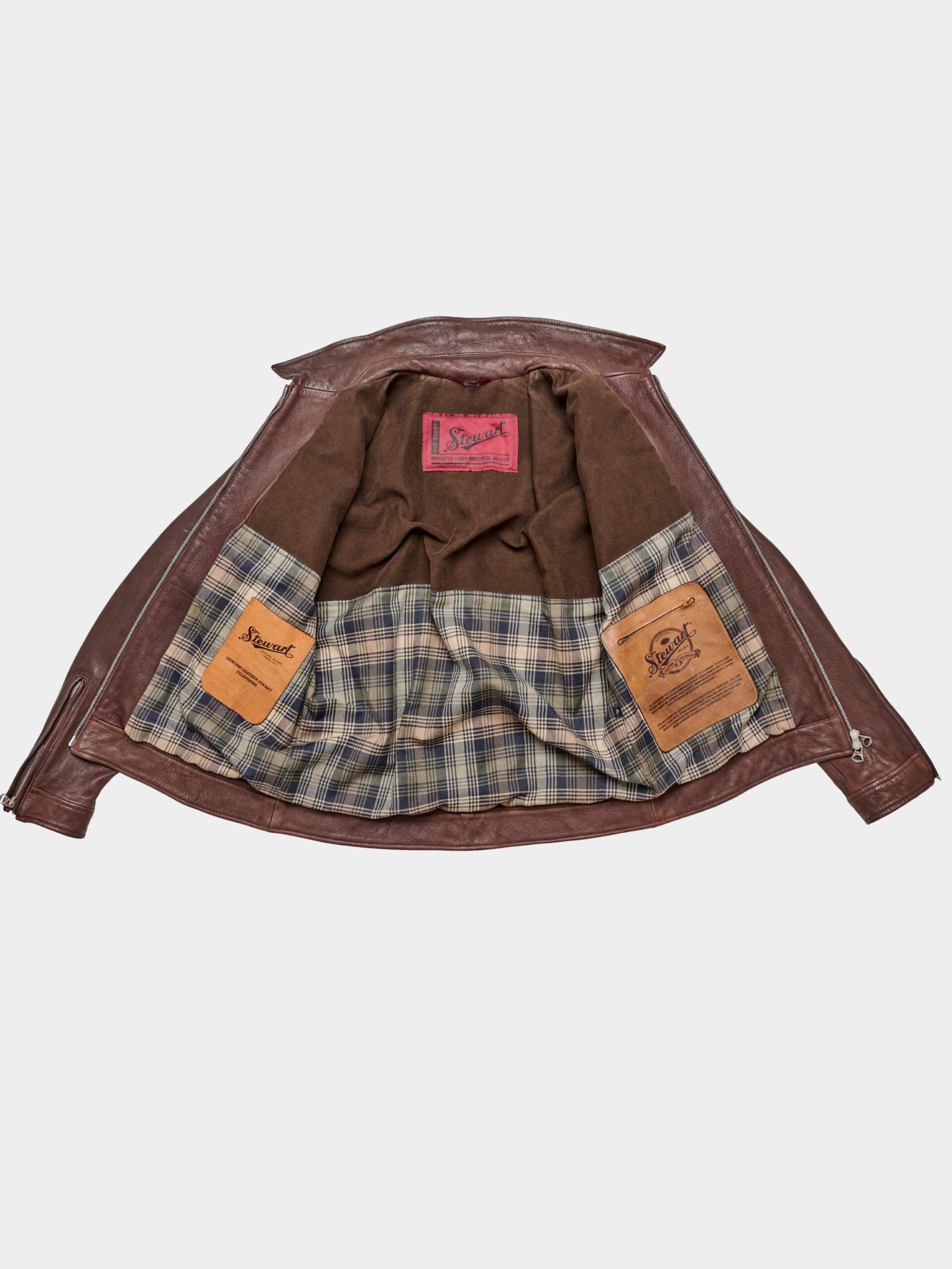 Goat suede garment-dyed jacket with double-zip, baracuta collar and cotton lining. Soft, durable and perfect for transitional wear.