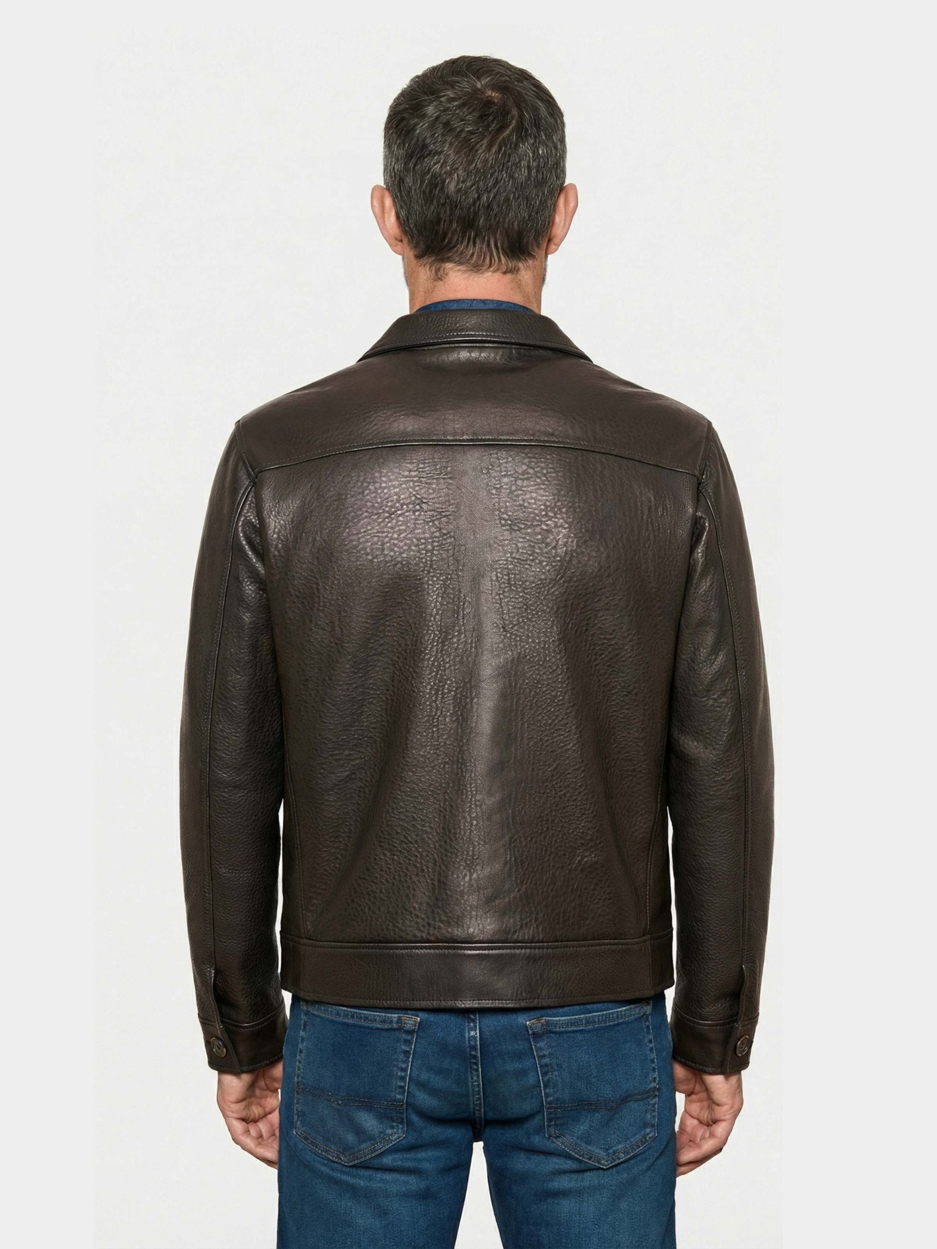 Men’s jacket crafted from Mississipi English lamb leather, known for its natural grain and refined texture. The Argo model features a button-up front closure, classic collar, and chest welt pocket. The technical nylon lining provides durability and comfort, making it ideal for cooler seasons. A timeless piece blending craftsmanship, functionality, and contemporary design.