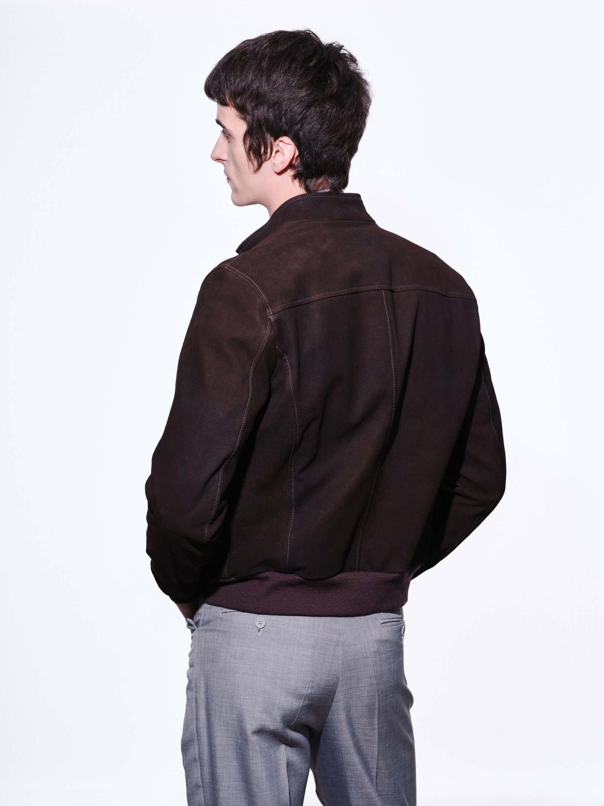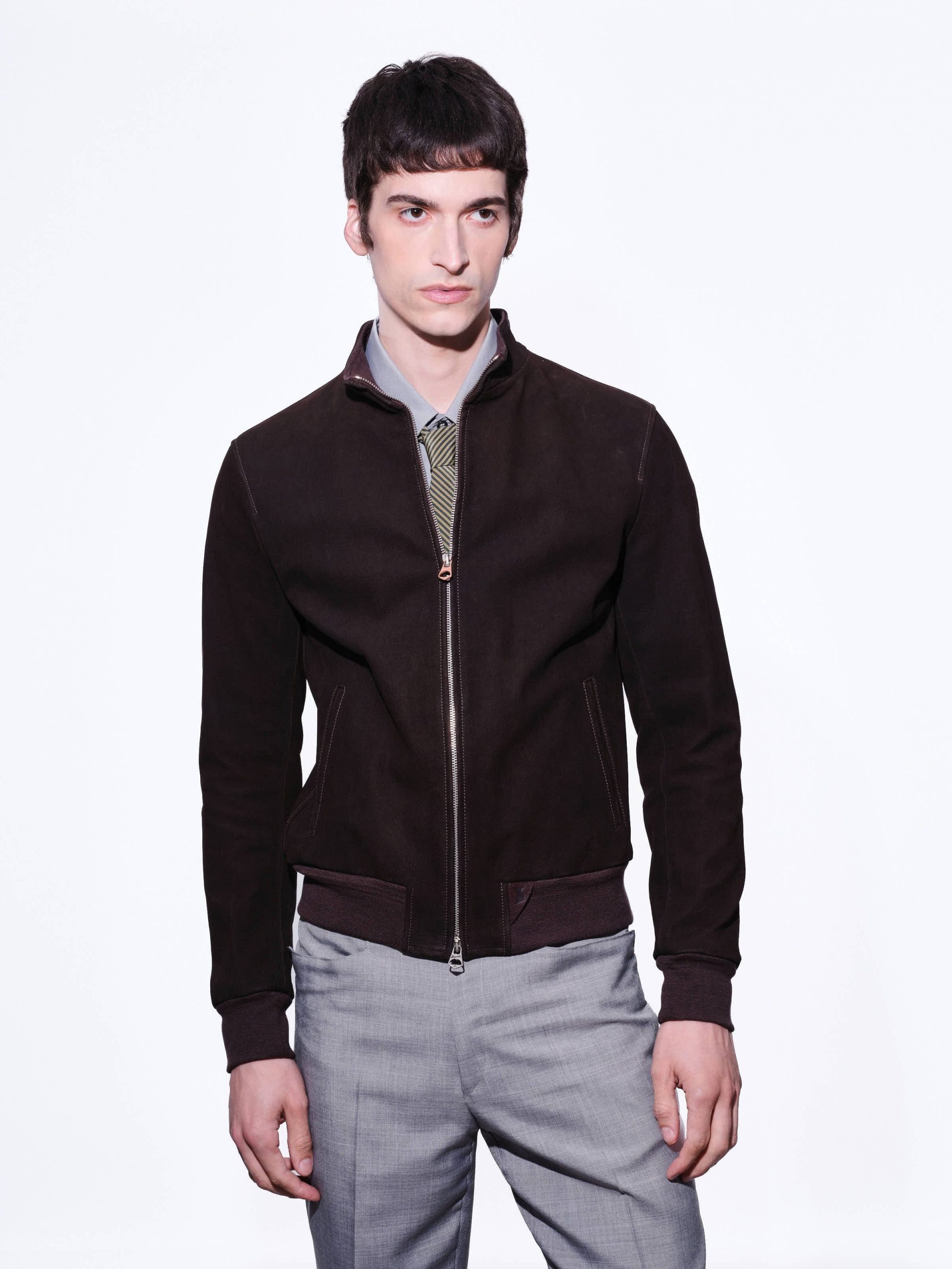 This piece features chevrette leather, a unique material with a soft peach-effect finish created through a special treatment. It offers comfort and durability. The front closure includes a double-slider zip, with ribbed knit finishing on the cuffs, hem, and inner collar for a snug fit. The cotton lining ensures breathability. Equipped with welt pockets and an internal pocket for practical storage.