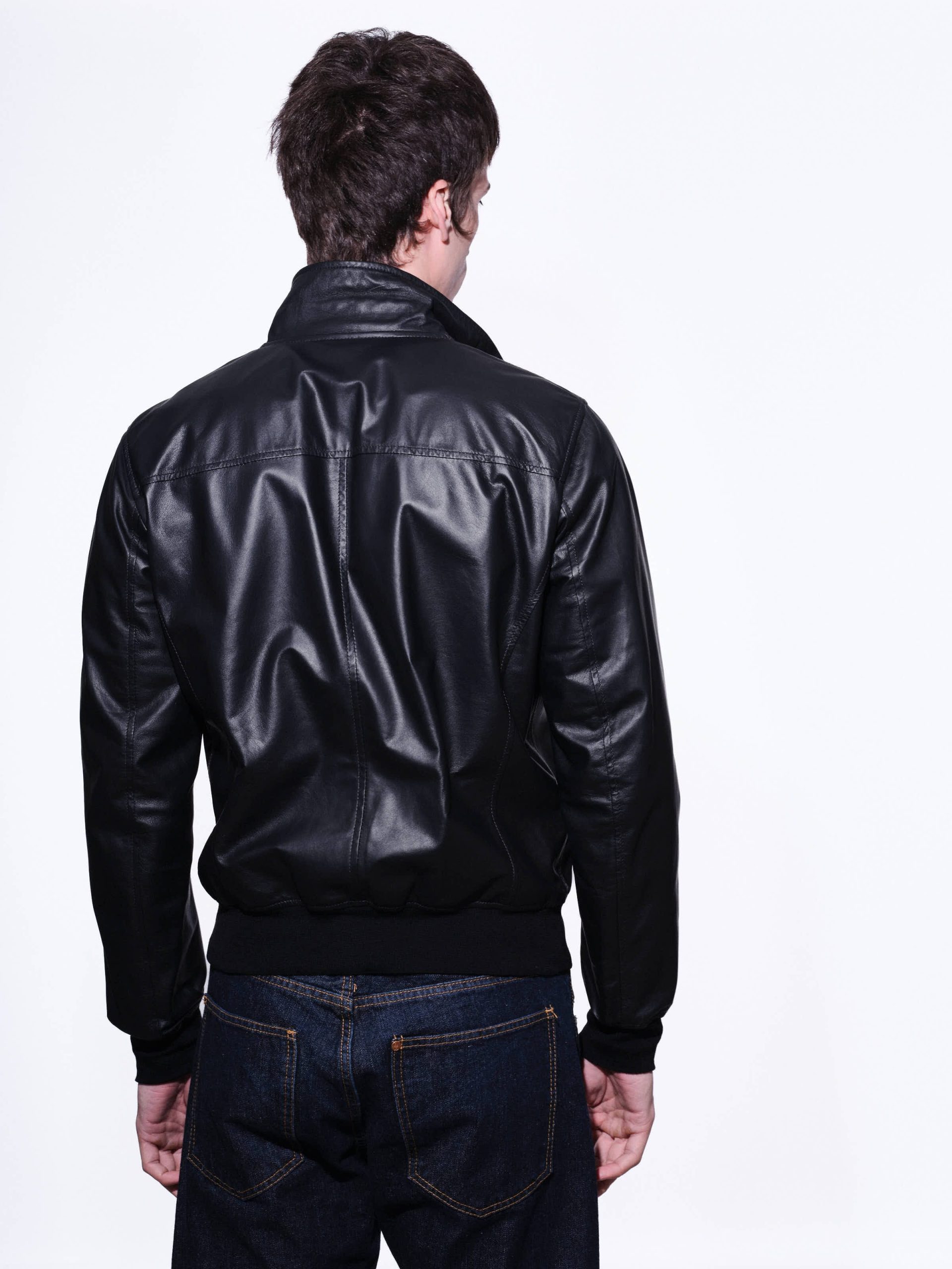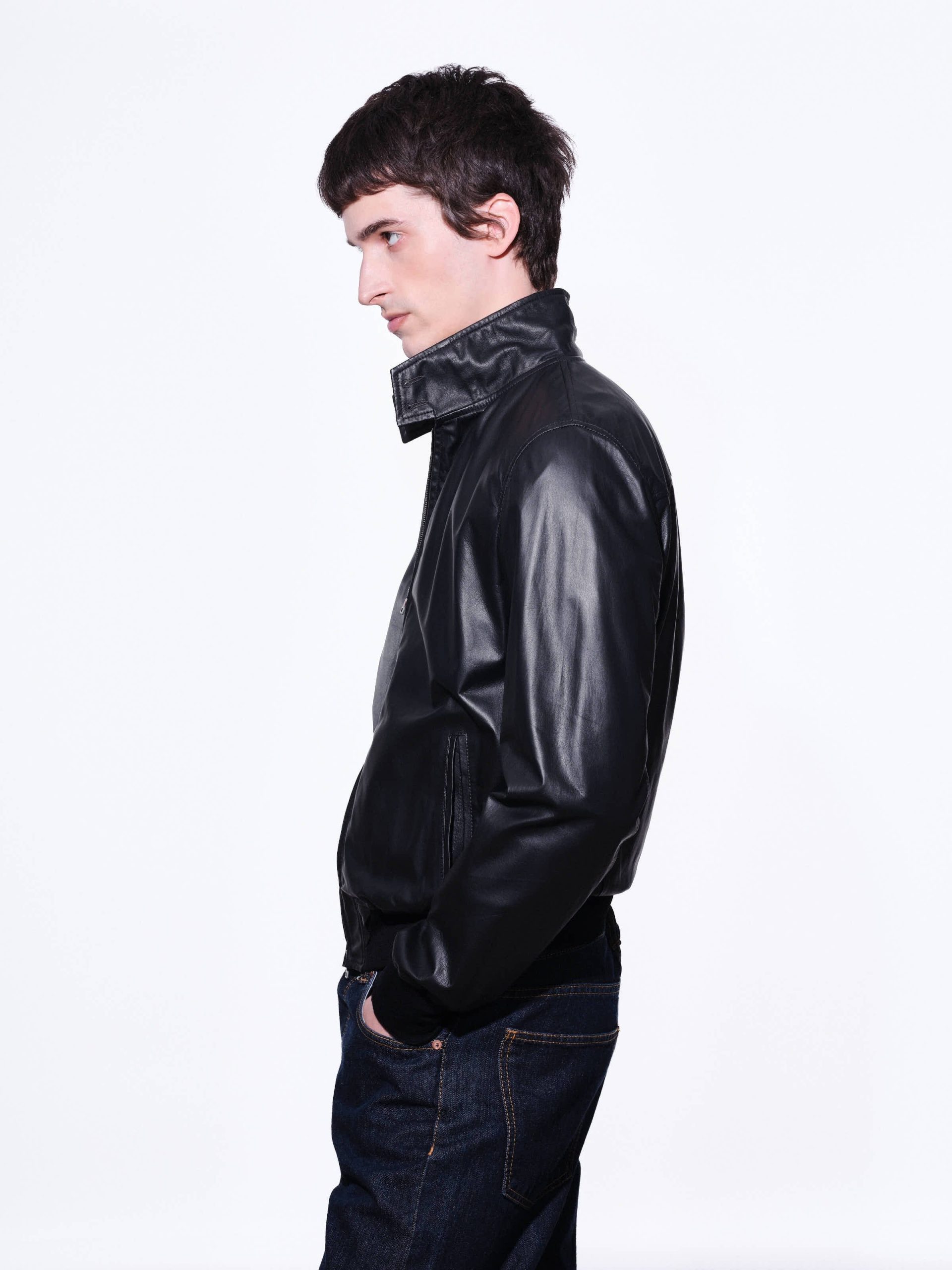 Men’s jacket in soft and lightweight nappa leather, designed for comfort and style. The unlined construction is enhanced by an exclusive pied de poule print on the inside. Front closure with a double-slider zip, knitted inner collar with button fastening, and ribbed cuffs and bottom hem for a comfortable fit. Welt pockets and an internal button pocket provide functional storage.