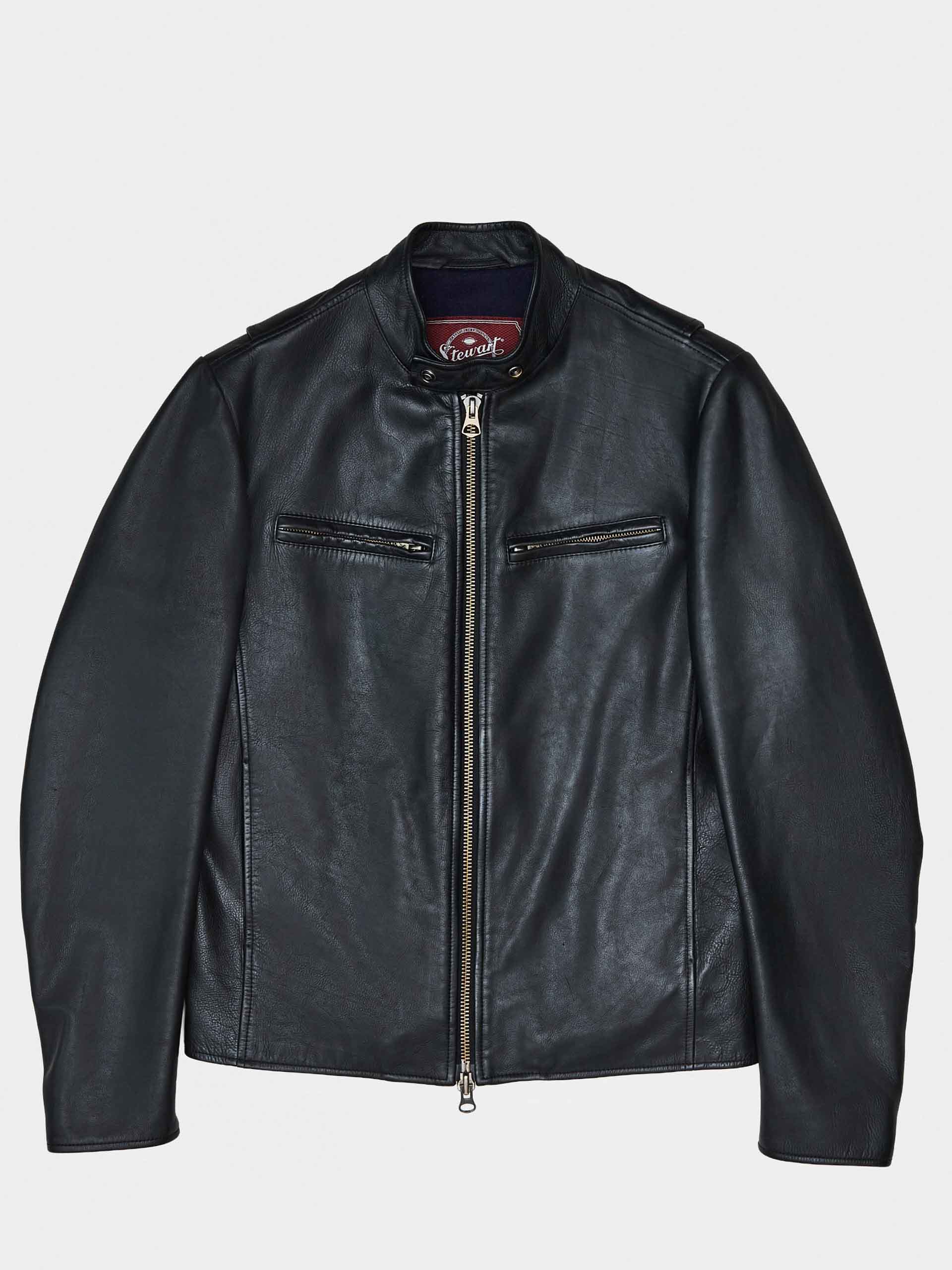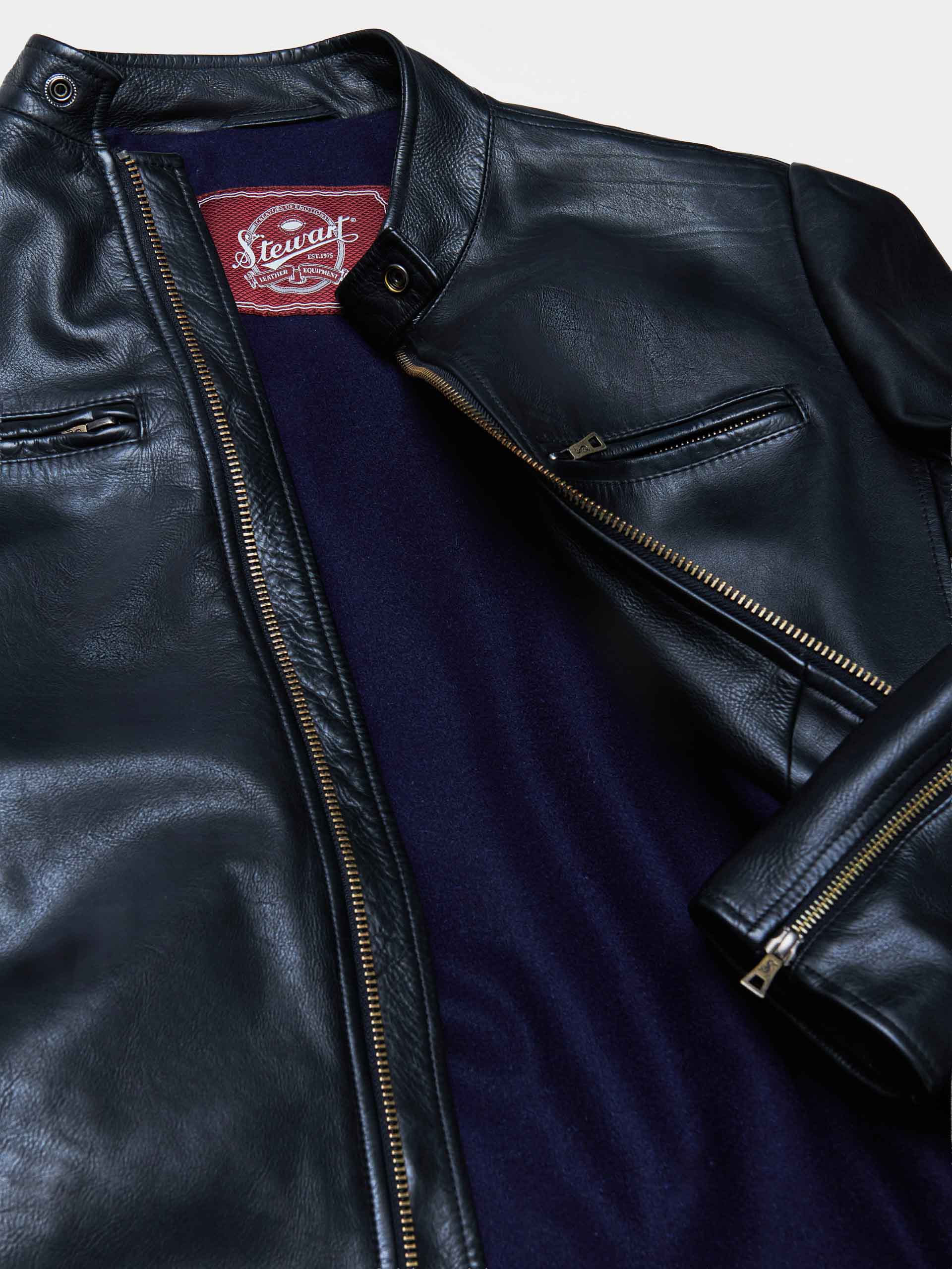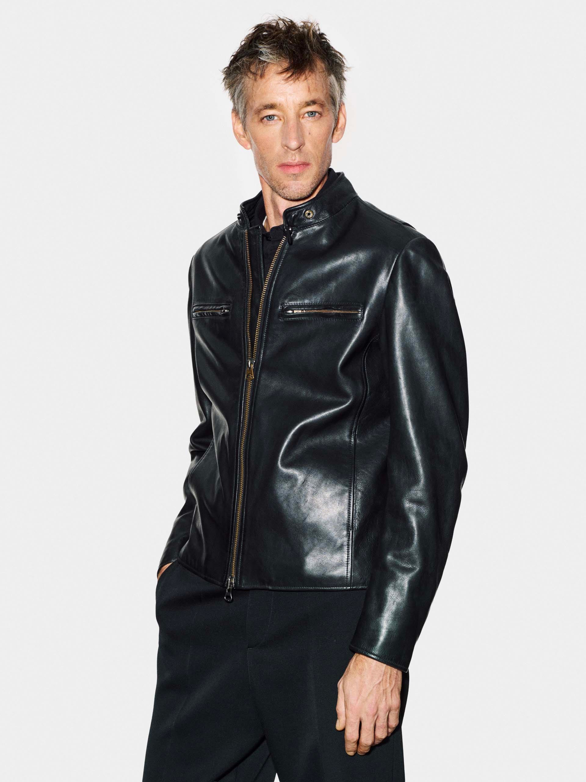 The Johnny Pull Up Calf is a pull-up calf leather jacket. Black pull-up calf leather is known for its ability to change tone and texture with use, creating a worn, natural effect. The solid structure and waxed finish give depth and durability to the material, while maintaining a smooth and comfortable fit.