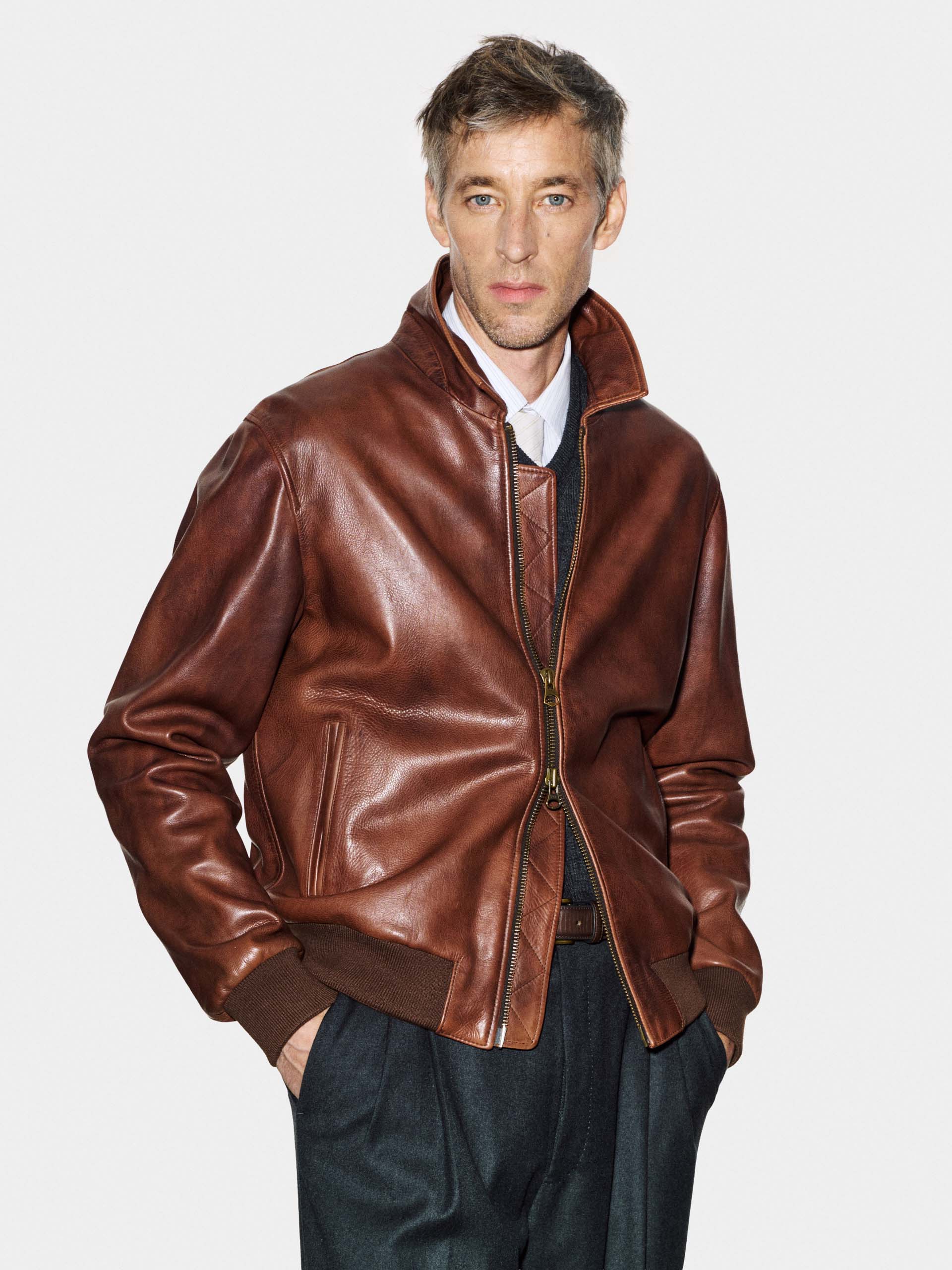The Matt men’s jacket is crafted from brushed nappa, a brushed leather known for its smooth surface, softness, and rich feel. This special finish enhances the depth of color and the natural beauty of the leather, giving the garment a bold yet refined character.