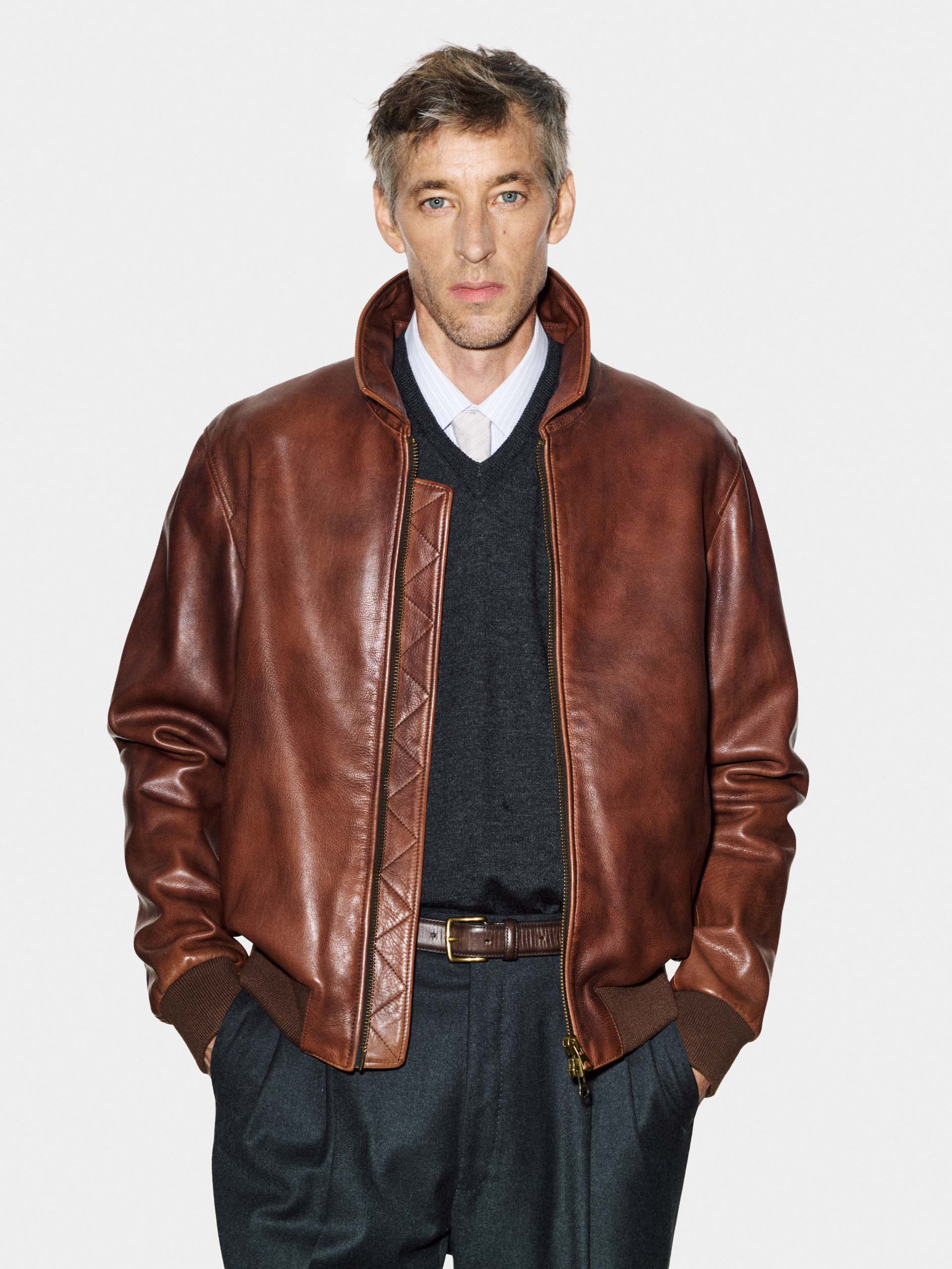 Men’s jacket in Natural Lamb leather, soft, full-bodied, and with a natural look. Front closure with two-way zipper for comfort and practicality. Contrasting knit trim on cuffs, hem, and inside collar for a sporty and contemporary touch. Half lining in linen ensures breathability and freshness. Welt pockets with a chest zip pocket, plus double internal pockets: one for a wallet and one for a smartphone, for practical organization.