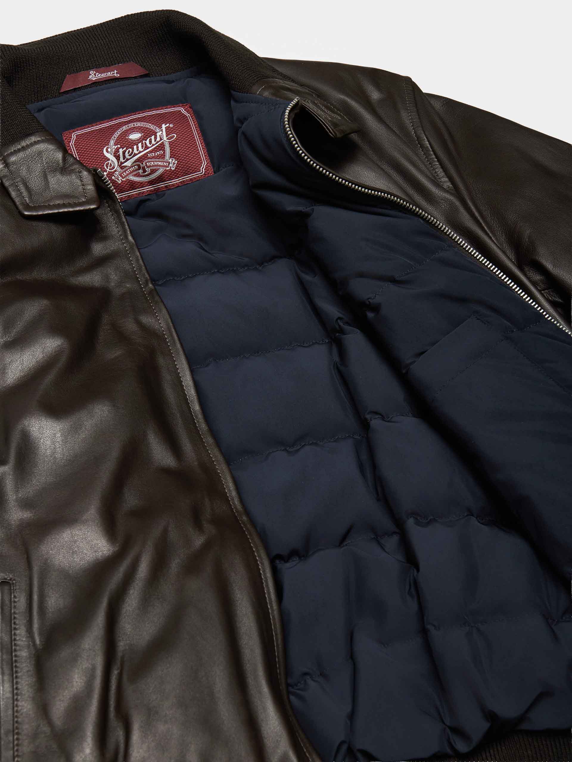 A lightweight, comfortable leather jacket featuring a front closure with zip and concealed snap buttons.