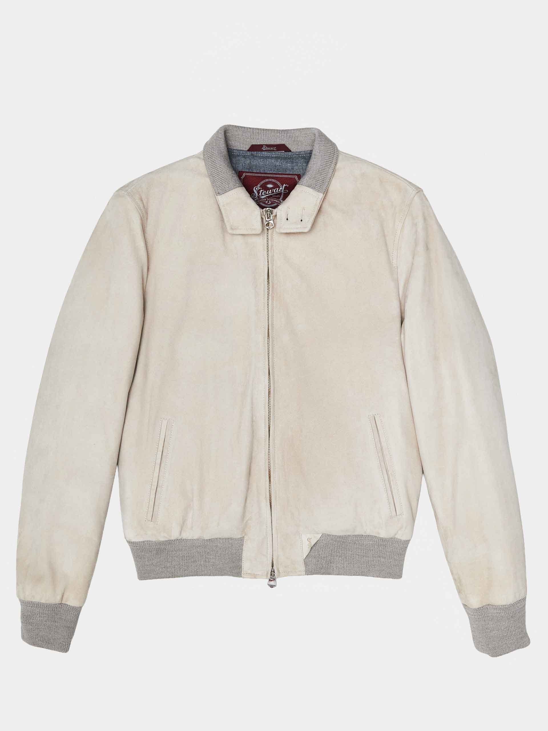 Men’s jacket in sand-colored stone-washed nappa leather, soft and lightweight with a distinctive peach-skin feel.