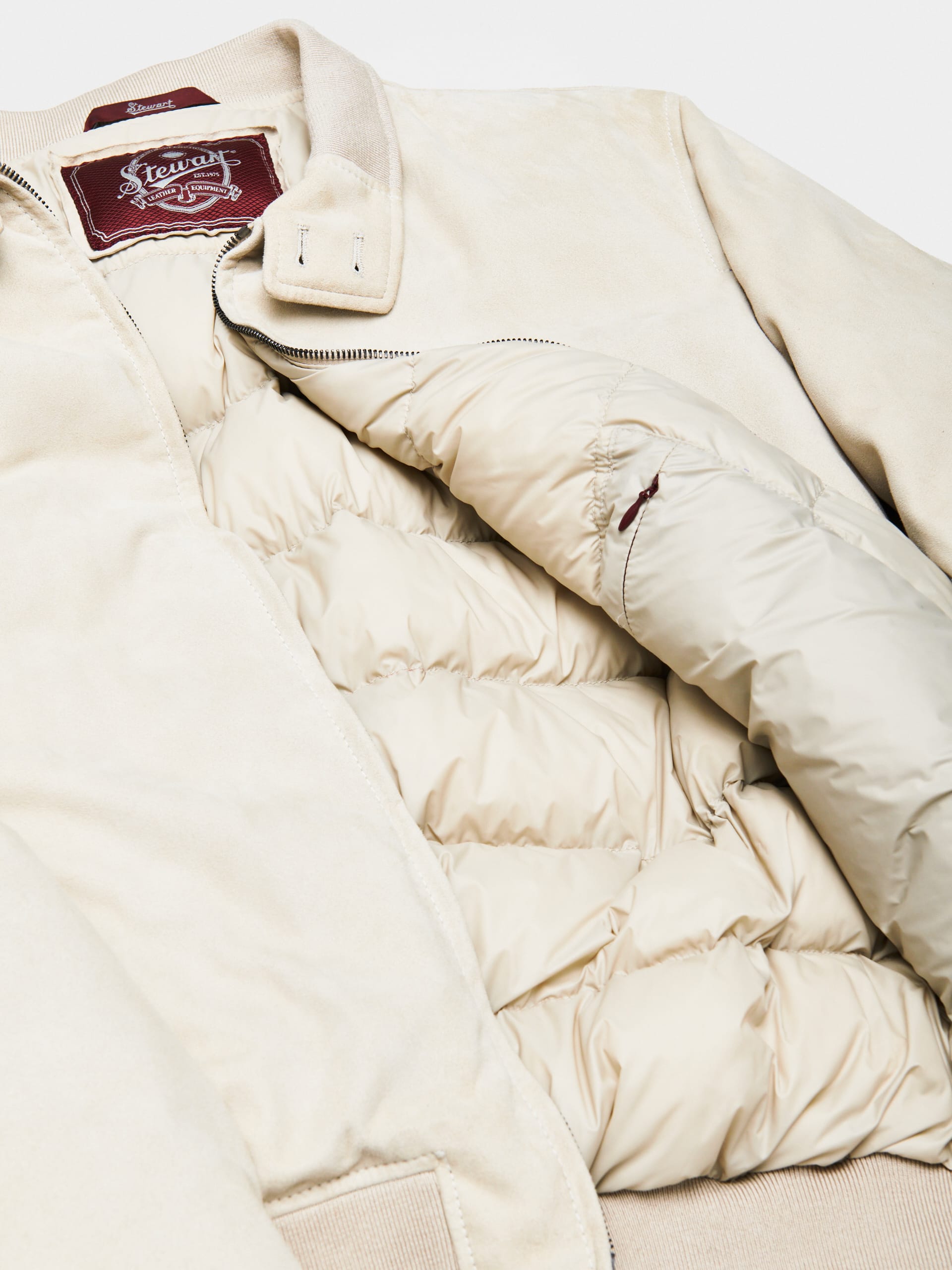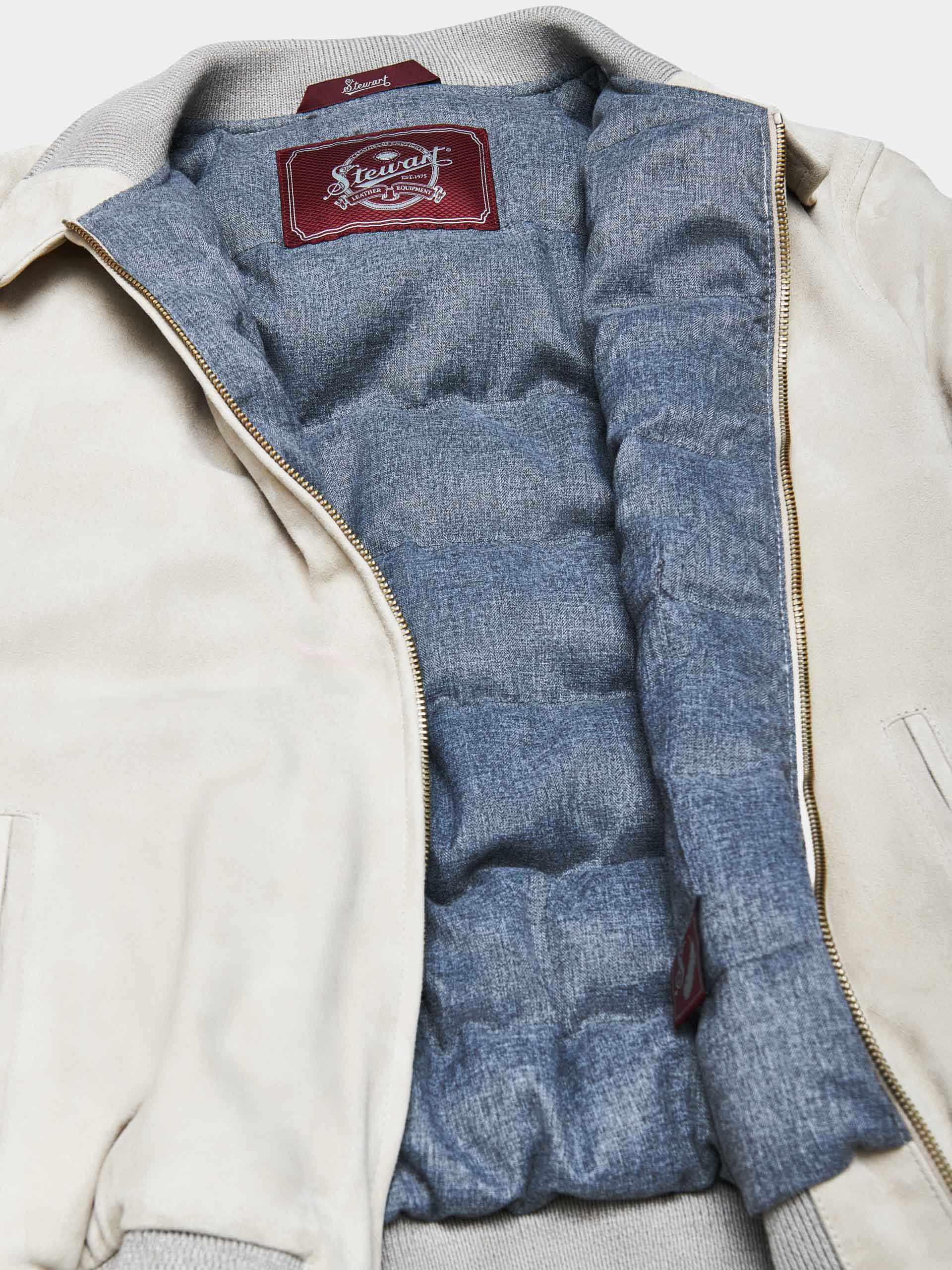 Men’s jacket in waxed suede, sand color, part of the Nuvola line. Made in Italy, this piece combines craftsmanship and performance: the waxed suede ensures durability and softness, while the genuine goose down padding provides warmth and lightness. It features a double-slider front zip, a barracuda collar with two-button closure and knit interior, plus ribbed hem and cuffs for a secure, comfortable fit.