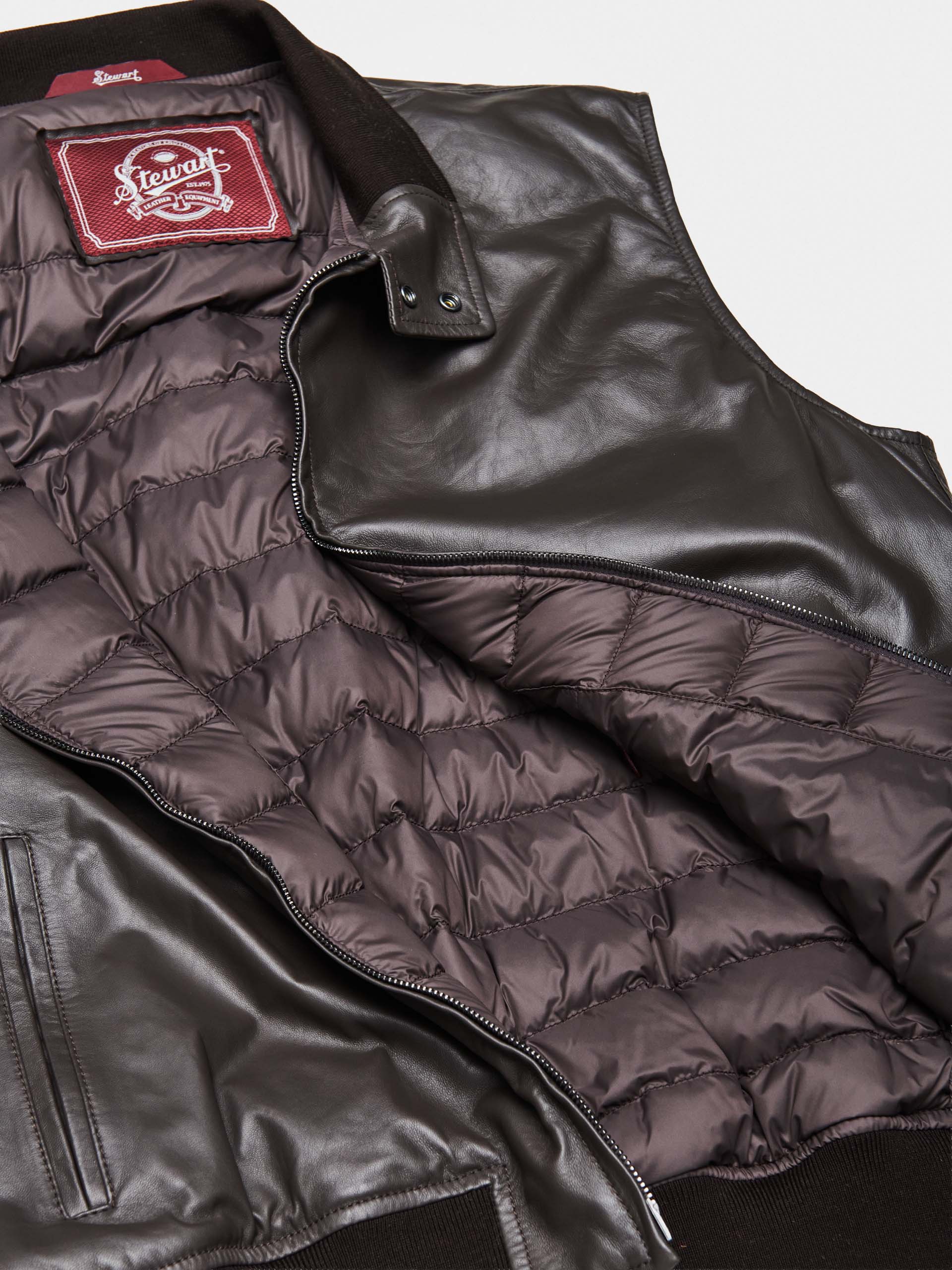 The Nuvolino Glove Nappa is a nappa leather down jacket crafted in Italy, designed for warmth, breathability, and lightness. Made from glove-soft nappa leather combines flexibility and durability while maintaining a refined structure. The genuine down filling provides natural insulation and exceptional comfort, making it a perfect winter leather jacket for colder days. Functional details — double-slider front zip, ribbed cuffs and hem, and tonal stitching — underline Stewart’s technical precision and Italian craftsmanship.