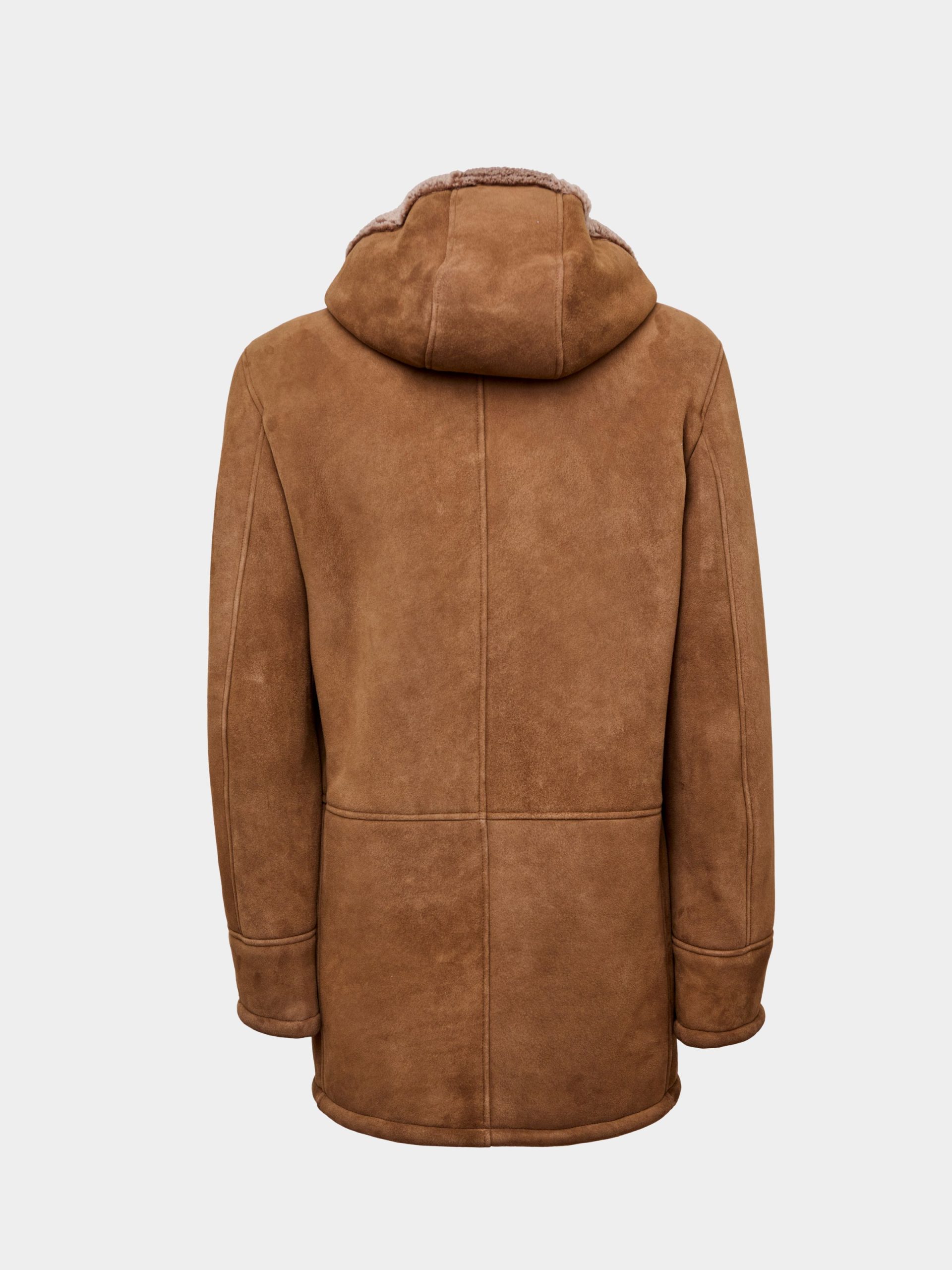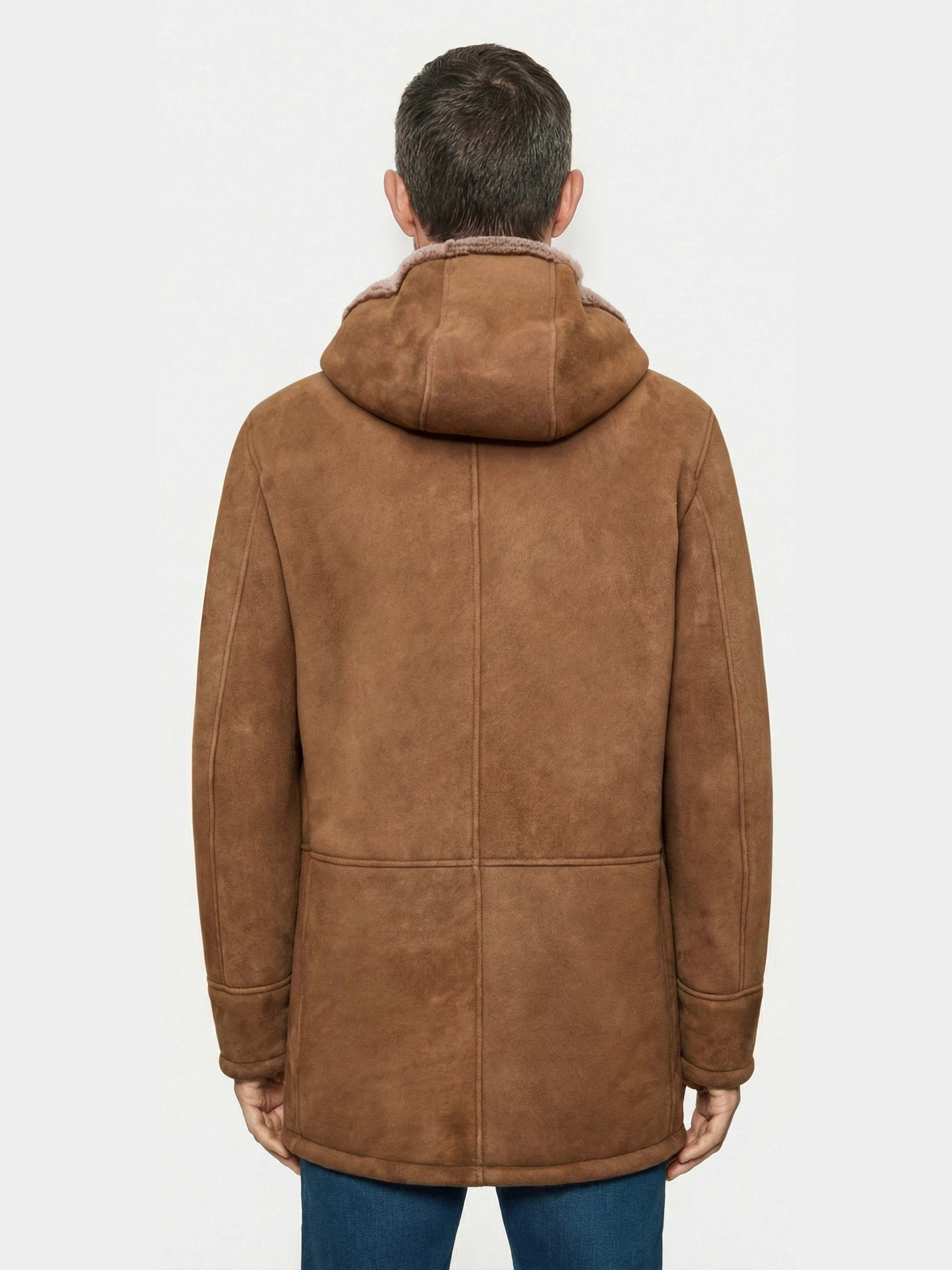 The Ortisei jacket is crafted from premium Merino Suede Brisa Lamb shearling, offering the perfect blend of softness, warmth, and lightweight comfort. Its velvety suede finish enhances the depth of the hazelnut color, giving the jacket a refined yet naturally understated charm. The integrated hood lined with Merino fur provides exceptional insulation on colder days, while the double-slider zipper adds practicality and ease of movement. Front flap pockets and side welt pockets complete the piece with functional elegance and meticulous craftsmanship. Warm, versatile, and full of character, it is the ideal choice for those seeking an authentic, timeless outerwear piece.