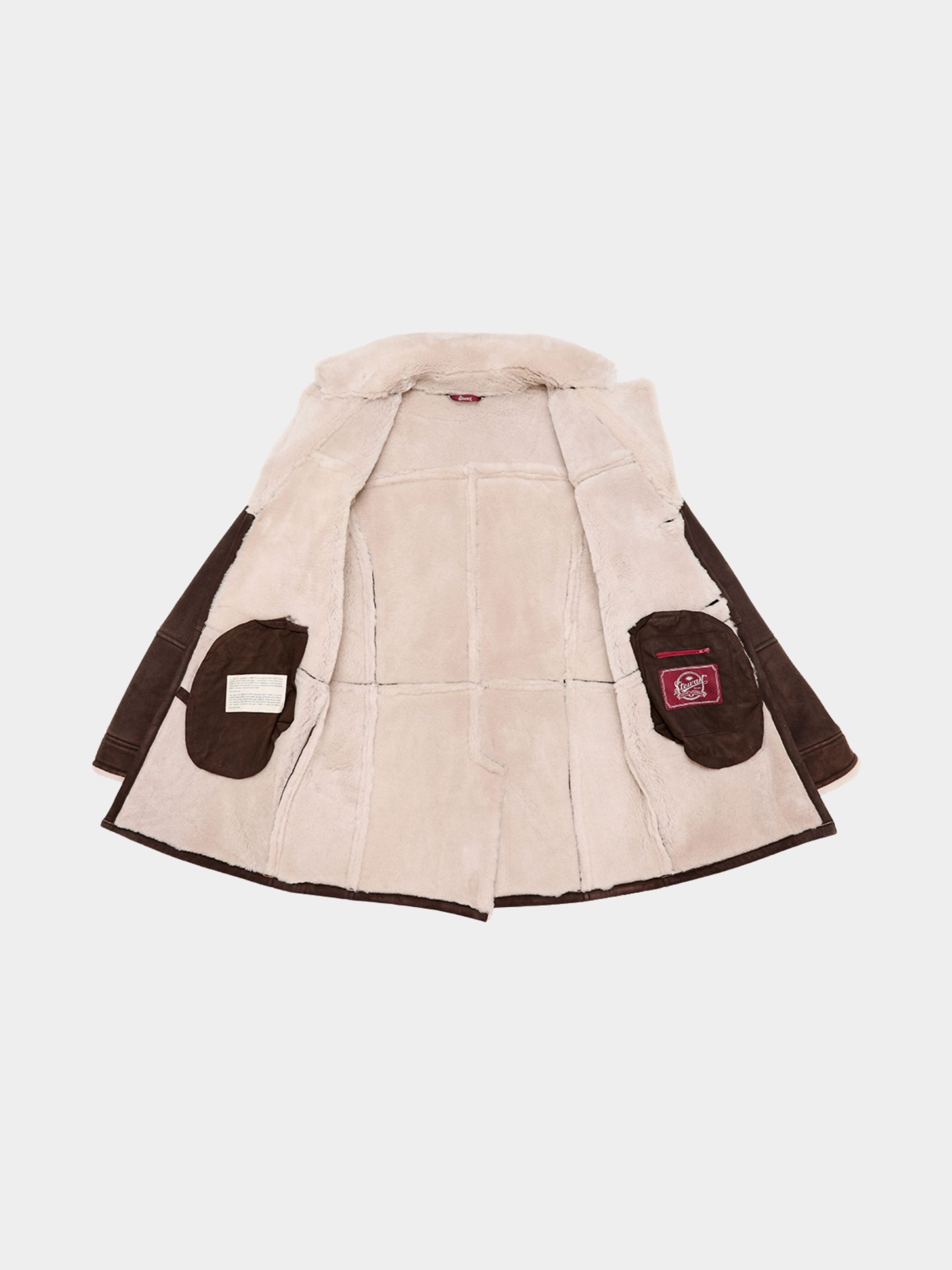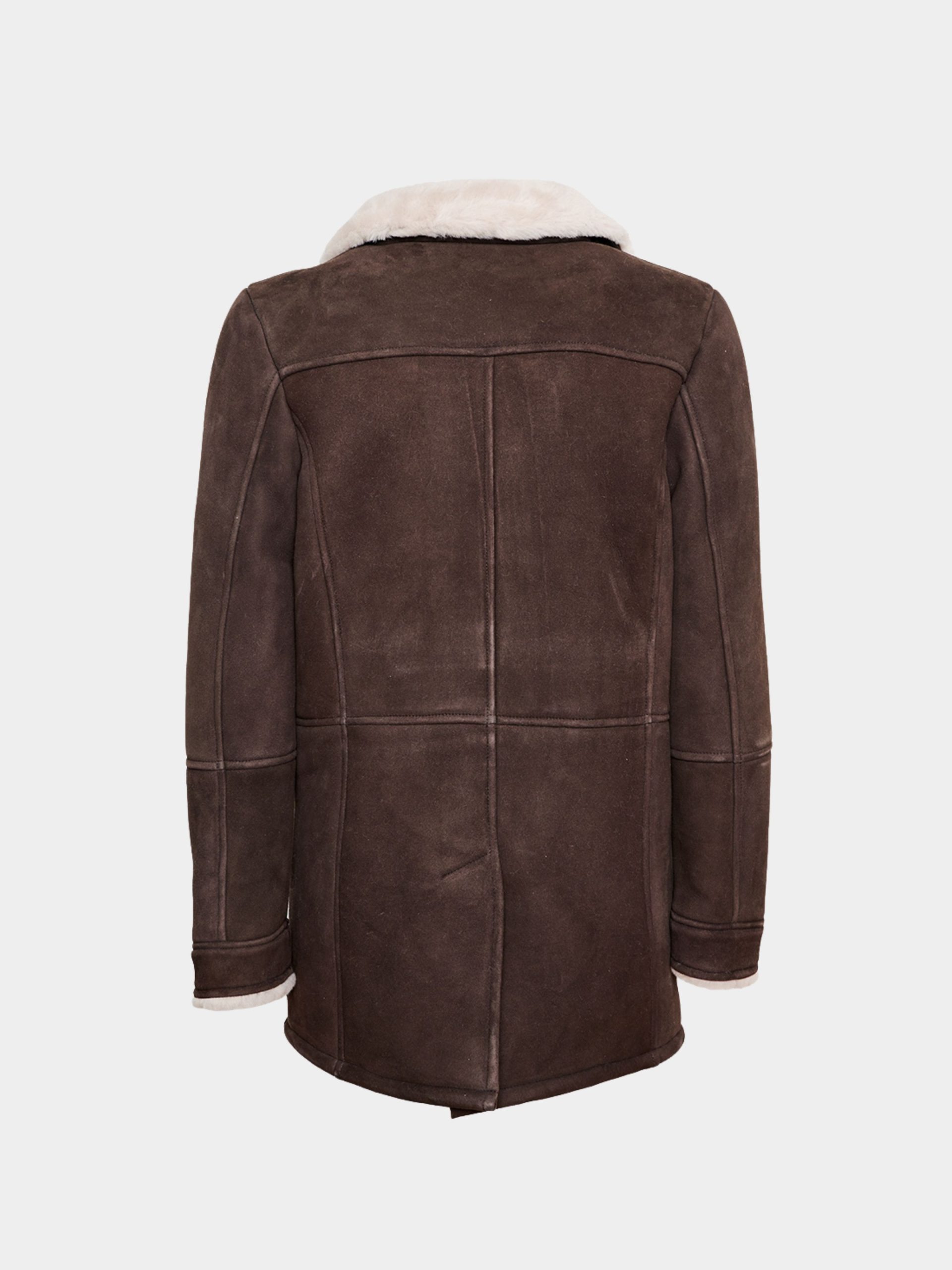 The Roberto jacket is crafted from premium ironed merino shearling, pairing a rich dark brown exterior with a soft beige interior. Made from high-quality suede lamb leather, it guarantees exceptional warmth and comfort thanks to its natural shearling lining. The design includes a wide collar, horn-button closure and angled front pockets that blend practicality with refined aesthetics.