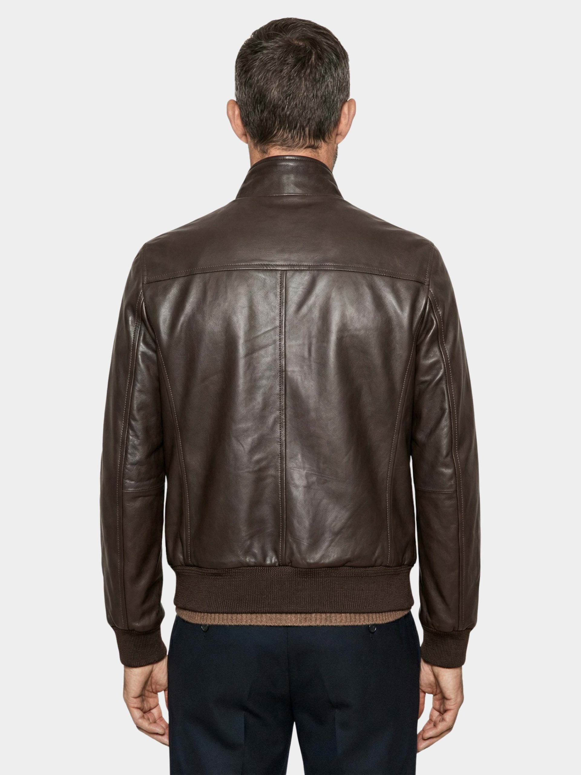 The William bomber jacket in Nepal Lamb leather is a timeless Stewart piece designed for men who value elegance, comfort, and essential style. Crafted from premium Nepal lambskin, it offers a naturally glossy finish, exceptional softness, and remarkable lightness. The clean design features a two-way front zipper, ribbed high collar, cuffs, and hem for a perfect fit and effortless style. Ideal for both casual and urban looks, this jacket is a sophisticated and versatile choice for everyday wear.