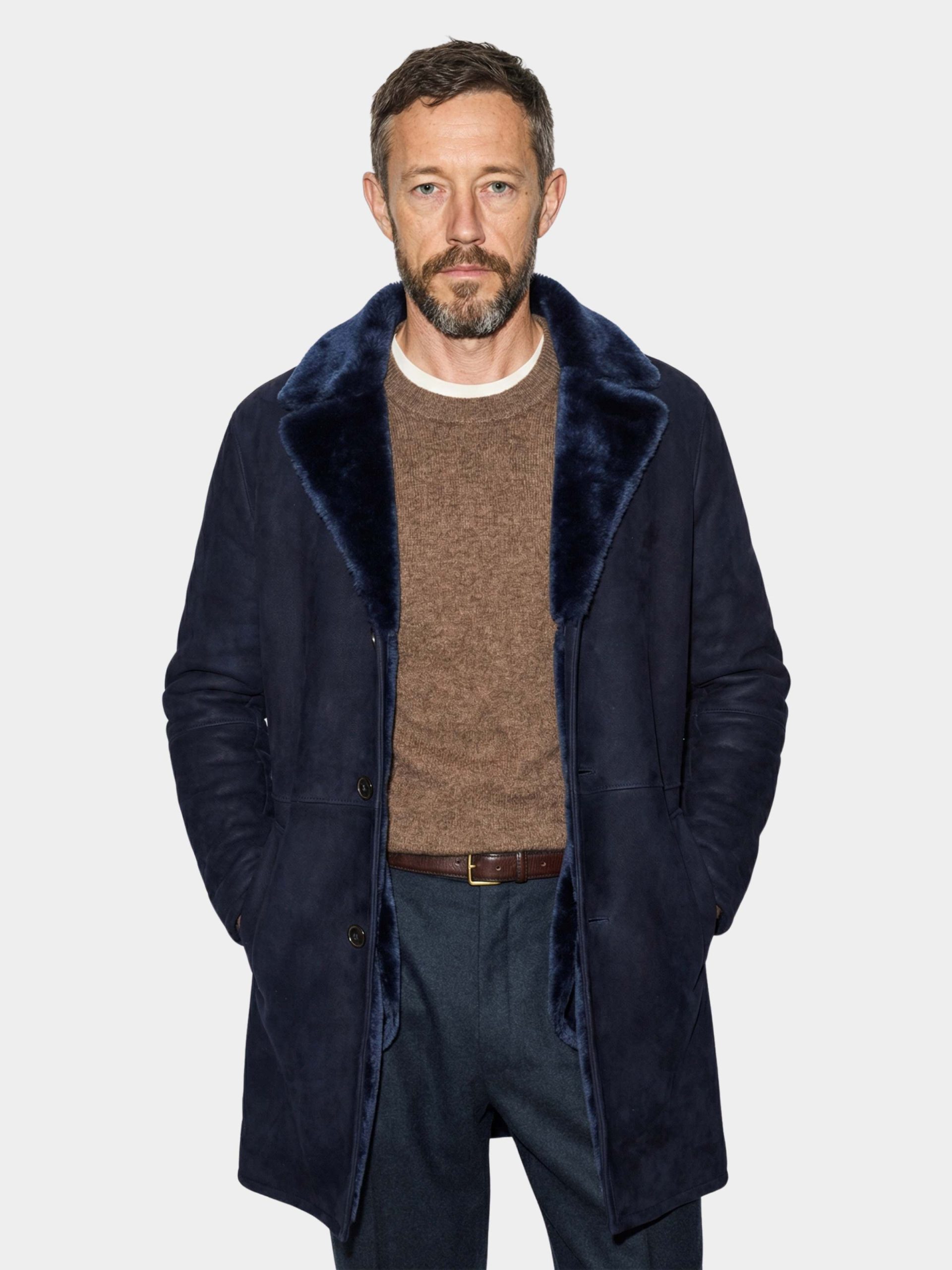 Ironed merino shearling suede coat with a clean, refined design.