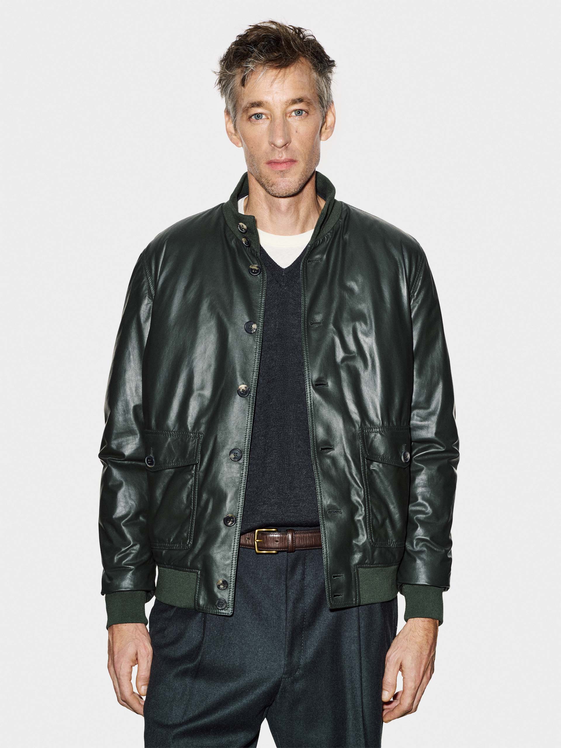 The Nuvolino men’s down jacket is crafted from waxy suede.