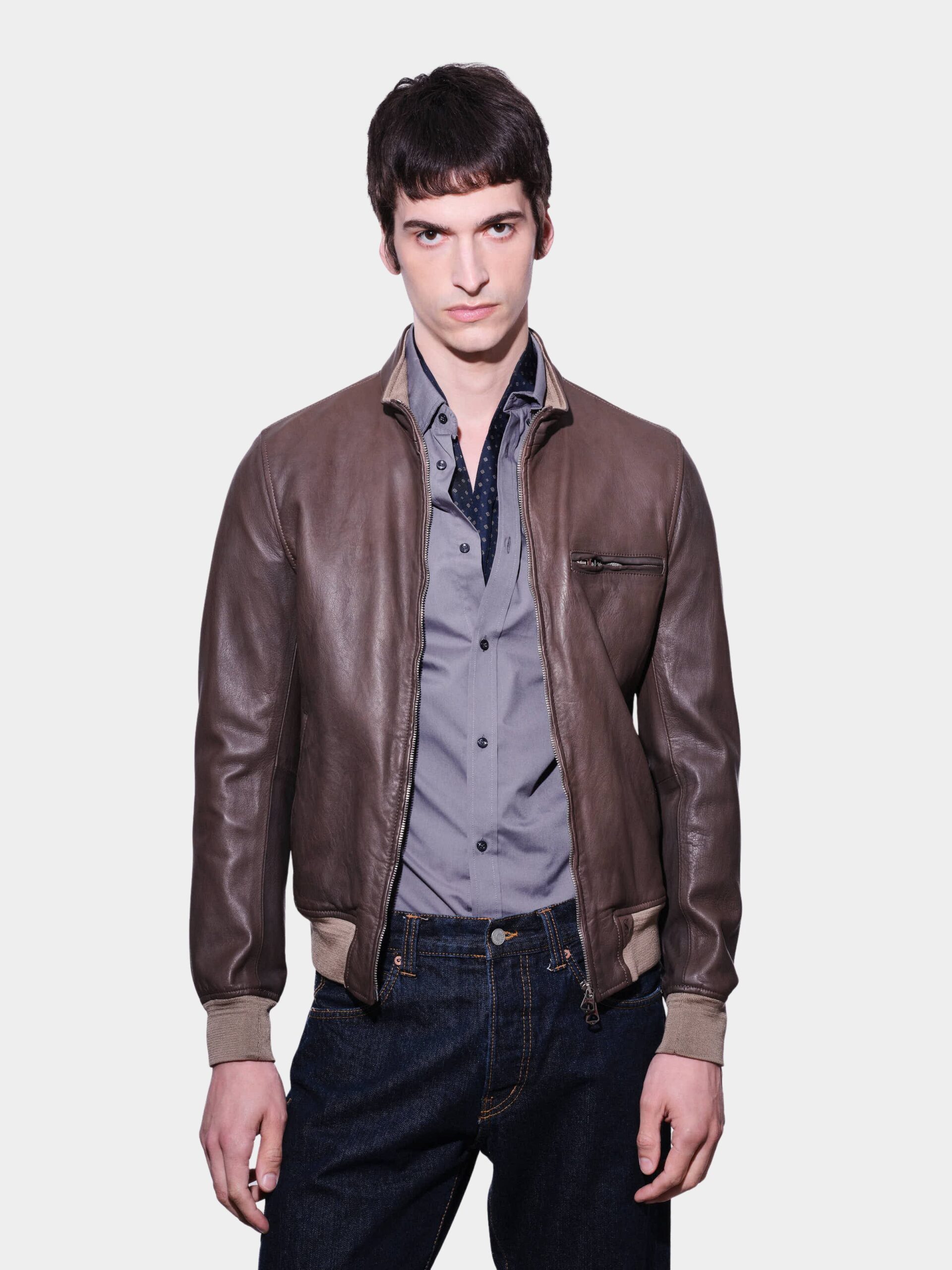 Giacca da uomo realizzata in pregiata Boxing Lamb, una pelle di capra caratterizzata da una grana naturale ben visibile, morbida al tatto ma allo stesso tempo corposa e resistente. Il modello presenta una chiusura frontale con zip a doppio cursore e un collo rifinito in maglia con chiusura a bottoni, pensato per un comfort superiore. Fondo giacca e polsini in maglia per una vestibilità più aderente e confortevole. L’interno è foderato in puro cotone, mentre le tasche a filetto e la tasca interna portafoglio garantiscono praticità e funzionalità.