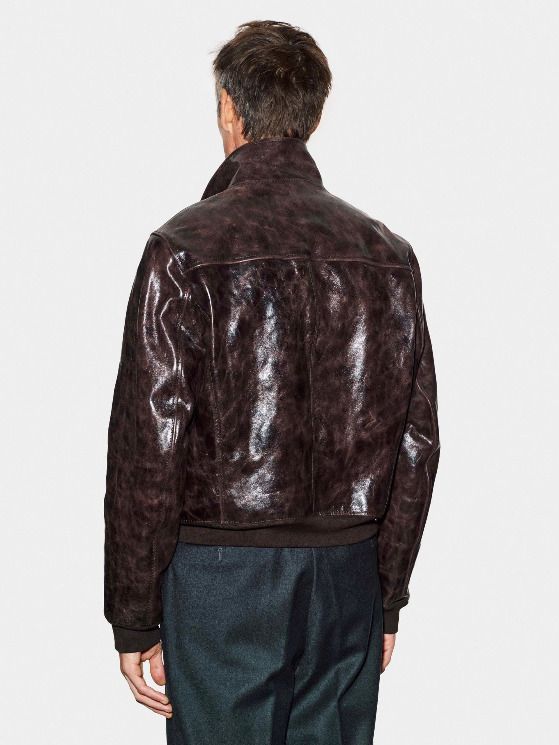 Giacca da uomo in nappa stone wash color sabbia, un pellame morbido e leggero che offre un particolare effetto pesca al tatto.
